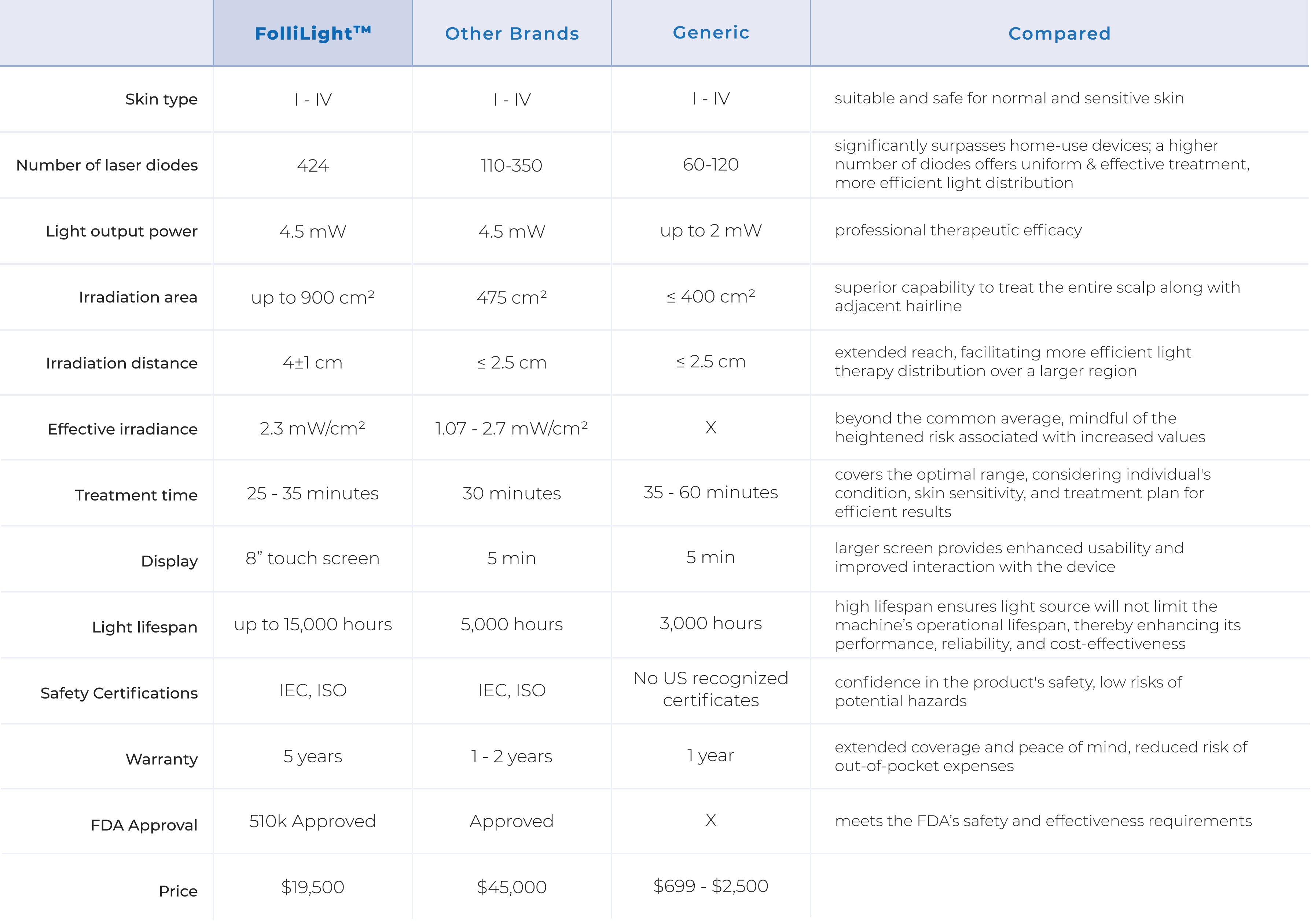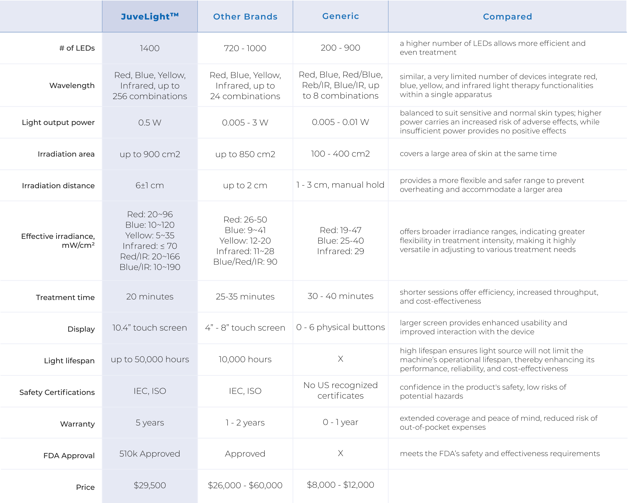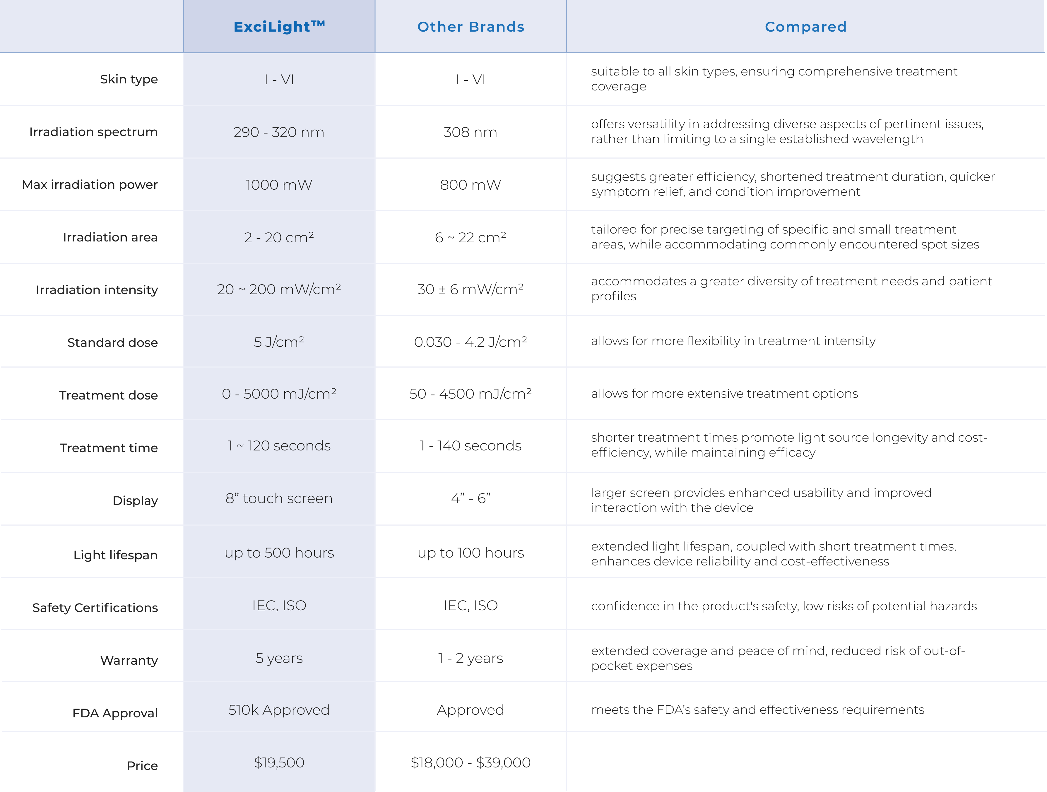 Blue Light: for dermatological issues, specifically moderate inflammatory acne vulgaris;